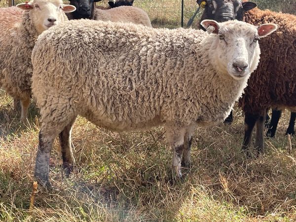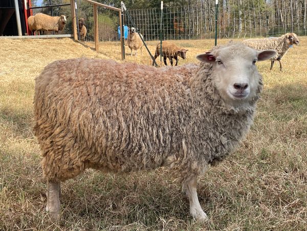 AllenCreek Betty White is a white ewe out of AllenCreek Kelly Spot 1 and Sommarang Nuuk. She was born April 19th, 2019. She arrived on our farm October 2023. We are excited to see what she produces in the years to come.