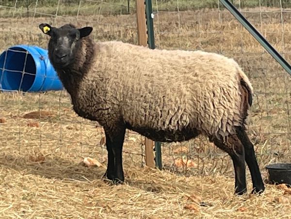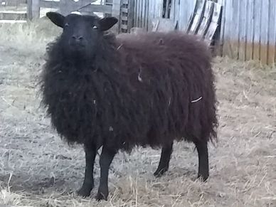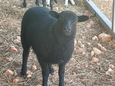 OK Acres Onyxx is a solid black ewe out of OK Acres Ophelia and OK Acres Royal. She was born April 9th, 2022. She arrived on our farm July 2023. We are super excited to have her in our flock. We can't wait to see what she produces in the following years.