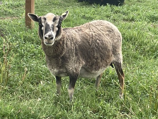 GlenTamarack Greater Pewee is a grey katmoget ewe out of GlenTamarack Kiisselli and GlenTamarack Hoisin. She was born May 6th, 2021. She arrived on our farm October 2023. We are super excited to have her in our flock. We can't wait to see what she produces in the following years.